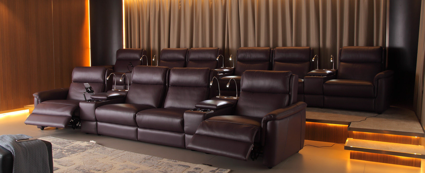 There's literally nothing in home-theater sofa that we didn't design having your total comfort in mind. Indeed, its details, versatility and the quality of its materials can be told from meters away. Both its headrest and footrest can be opened, to switch